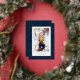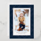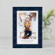 Chic and stylish, this one-photo Christmas card is the perfect way to send holiday greetings to friends and family. A silver foil plaid frames a single vertical photo. The two text spots can be customised with your own greeting, name, year or any other message. The back is a matching navy blue with white dots. The greeting can be edited for Merry Christmas, Happy Holidays, Happy New year or any message! This card is perfect for families, newlyweds and more!