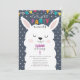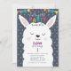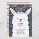 Navy Colourful Stripes Lama Fun Birthday Party Invitation