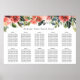 Beautiful navy blue, coral and blush watercolor flowers and green garden foliage, wedding 10 table seating chart. Personalise text, customise font style, colour and size.