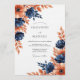 Navy Coral Painterly Blossom Wedding Invitation