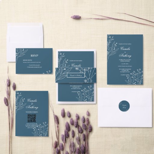 Navy Corner Floral Boho Wedding Guest Book