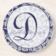 Navy Damask Monogram Wedding Anniversary Coaster