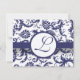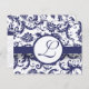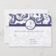 Monogram Vintage Damask Swirls Navy Blue Damask Wedding Invitation-