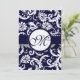 Navy Blue Damask Invitations, Response Cards RSVP Monogram Elegant Vintage Damask Swirls -
