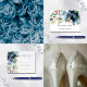 Elements: Watercolor flowers and greenery with a mix of serif and sans serif fonts. Colours: navy, dusty blue, steel blue, white, blush, green. Themes: rustic, garden, bohemian, country, outdoor wedding, modern, vintage, french. Collection: Navy & Dusty Blue Elegant Floral Watercolor Wedding Collection. Product Type: Program