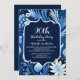 90th birthday party invitation with dusty blue flowers on a navy blue background. Contact me for assistance with your customisations or to request additional matching or coordinating Zazzle products for your celebration.