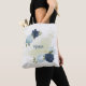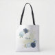 Beautiful tote bag featuring navy and dusty blue flowers and green leaves