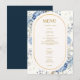 Navy Dusty Blue Floral Spring Bloom Wedding Menu