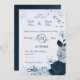 navy & dusty blue flowers botanical wedding invitation