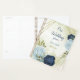 Beautiful wedding planner featuring navy and dusty blue flowers and green leaves