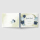 Beautiful wedding guest book featuring navy and dusty blue flowers and green leaves