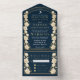 Navy Elegant Arch Art Nouveau Wedding All In One Invitation