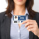 Navy Employee Name Badge with Logo and QR Code ID Badge