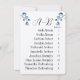 Alphabetical guest seating chart cards with a subtle navy blue eucalyptus sprig. The alphabetical letters are listed at the top with the guests' names in alphabetical order below with their corresponding table number. Edit one card at a time, add it to your cart, then return to the original card and edit it for the second card, add it to your cart, and continue doing this until you have all of your cards completed and in your cart.