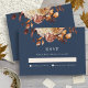 Navy Fall Floral Wedding RSVP Card. This elegant and rustic wedding RSVP features hand-painted watercolor burnt orange and terracotta leaves, cream and beige dahlias, and beautiful rust-coloured roses perfect for a fall or autumn wedding!