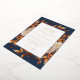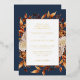 Navy Fall Wedding Foil Invitation. This elegant wedding invitation features a beautiful frame of hand-painted boho watercolor burnt orange and terracotta leaves, cream and beige dahlias, and beautiful rust-coloured roses on a navy background printed in real gold foil. Find matching items in the Navy Autumn Romance Collection.