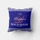 Stylish and elegant living navy colour family beach house, cottage or any vacation home monogram script decor throw pillow. Coral colour monogram initial with white bold typography. Just use the "personalise this template" feature to insert your family name, initial and the established date.
