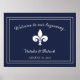 Elegant and simple Wedding welcome poster featuring a fleur de lis against a Navy background. This design is a unique choice for a modern wedding. Easy to customise with your wedding details. Click "Customise It" to find more personalisation options.