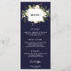 Beautiful menu card with ivory florals and a navy background and reverse side. Easy to edit or delete the available text fields to personalize the information with your own, to create a professional and custom menu. Matching items available, please visit my shop now to see the full collection. Also available with a white or forest green background.