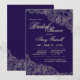 This invitation with a navy-blue background has stenciled, floral corners and is shown as a bridal shower invitation. It's perfect for any elegant, happy celebration. (<a href='http://www.freepik.com/free-vector/wedding-invitation-design_1075134.htm'>Designed by Freepik</a>). <br/><br/>The card is easy to customise with your wording, font, font colour and choice of six paper types.<br/><br/>Not exactly what you're looking for? All our products can be custom designed to meet your needs at no extra charge.<br/><br/>Simply contact us at heartfelthelper@gmail.com<br/><br/>Coordinating products available: