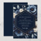Rich navy blue hues dominate this opulent design, featuring abundant floral blooms in deep blues, whites, and subtle hints of green foliage. This artistic arrangement evokes a sense of dramatic elegance, perfect for a sophisticated union. The dense botanical elements create a luxurious and captivating visual.