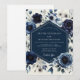 Deep navy blooms and delicate blossoms mingle with subtle grey foliage. This design evokes a moody yet romantic atmosphere, perfect for an elegant union. The rich color palette creates a sophisticated and timeless feel.