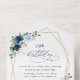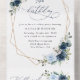 Invite friends and family in style and set the tone for your special day with this charming birthday invitation. Design features navy and blue watercolor flowers, greenery and gold frame on white background.