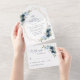 Navy Flowers, Blue Flowers, Greenery, Birthday All In One Invitation