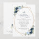 Invite friends and family in style and set the tone for your special day with this charming birthday invitation. Design features navy and blue watercolor flowers, greenery and gold frame on white background.