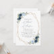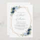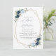 Invite friends and family in style and set the tone for your special day with this charming birthday invitation. Design features navy and blue watercolor flowers, greenery and gold frame on white background.