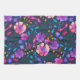 Hand painted vibrant watercolour flowers and sprigs reworked into a repeating pattern. Bold pinks and purples stand out against the dark navy blue background.