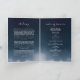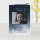 Funeral memorial program featuring on the front a photo of the deceased, their name, dates, the memorial venue, date of the event, and elegant navy blue fog background. On the inside is an obituary, and order of service; and on the back another photo, a thank you note and the second venue for after the funeral. For further customisation, please click the "Edit using Design Tool" link and use our design tool to modify this template. If you need help or matching items, please contact me.