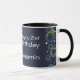 21st birthday, own name and photograph navy circle patterned mug. Uniquely design by Sarah Trett. Makes a great gift for a brother, son, grandson, husband, lover or friend. Place your favourite image into this design, and update the text with their age and name.