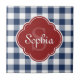 Navy Gingham Red Quatrefoil Monogram Tile