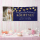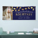 Upgrade your graduation celebration with this sleek and modern party banner. The design features a sophisticated navy blue backdrop that can easily be customised to any colour scheme to honour the graduate in style. A spot for a photo of the graduate, faux gold foil caps raining down, and a text template make it simple to personalise. This modern graduation banner sets the tone for an unforgettable celebration!