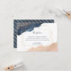 Geometric wedding enclosure card in navy, gold, and blush. You can use the card as a Reception Card, Information Card, Details Card, it's up to you! Your details are framed in a gold geometric shape with a splash of watercolor in navy on the top and blush on the bottom. Gold flecks of dust decorate the top and bottom of the card. The back of the card is designed with gold stripes in a diagonal pattern over a navy blue watercolor background. You can add all of your wedding details to the card. If you need to make more changes, you can click on the customise link/button and change things like font size, font style, font colour, etc.