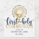 Modern, elegant First Holy Communion thank you bottle labels. Design features gold chalice icon, typography script ''First Holy Communion'', gold confetti. Personalise with a name, date and thank you message.