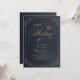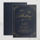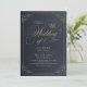 Navy gold elegant calligraphy vintage wedding invitation