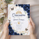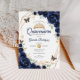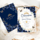 Navy blue, gold and white Quinceanera celebration invitation. Features, script font, gold butterflies, watercolor roses and tiara. Perfect for an elegant princess style glam celebration. Personalise with your own details. Printed Zazzle invitations or instant download digital printable template.