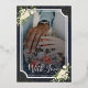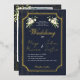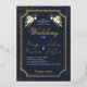 The back showcases a beloved couple's photo framed by the same sophisticated navy, gold glitter, and white floral design, allowing you to personalize with a cherished memory. This elegant and glamorous invitation is perfect for formal, black-tie, New Year's Eve, or winter weddings, offering both essential information and a personal touch.