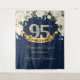 Navy Gold Greenery Floral 95th birthday backdrop Tapestry