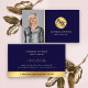 Navy & Gold Logo Modern Real Estate Agent Photo Business Card