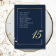 This minimal dark navy blue, gold and white table number card is bold and elegant. The script typography table number is accentuated by border that frames the number. Add your guests' names to create a seating chart as well.