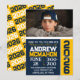 Navy Blue & Gold Yellow Vertical Modern Graduation Photo Invitations