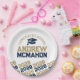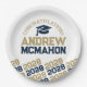 Navy Blue & Bronze Gold Personalised Graduation Paper Plates - Half Repeating Congratulations