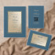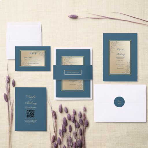 Navy Gold Rectangle Floral Boho Wedding Invitation