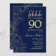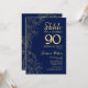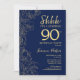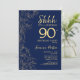 Navy Gold Surprise 90th Birthday Invitation. Minimalist modern feminine design features botanical accents and typography script font. Simple floral invite card perfect for a stylish female surprise bday celebration.