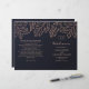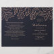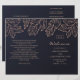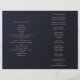 Navy gold wedding program folded. Blue botanical