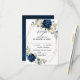 Dark navy blue floral wedding Invitation featuring elegant bouquet of navy blue, royal blue , white , gold, champagne ivory, blush colour rose , hydrangea, ranunculus, peony, flower buds and sage green eucalyptus leaves and elegant watercolor with round glitter geometric neutral frame. Please contact me for any help in customisation or if you need any other product with this design.