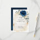 Dark navy blue floral wedding RSVP card featuring elegant bouquet of navy blue, royal blue , white , gold, champagne ivory, blush colour rose , hydrangea, ranunculus flower buds and sage green eucalyptus leaves and elegant watercolor with round glitter geometric frame. Please contact me for any help in customisation or if you need any other product with this design.